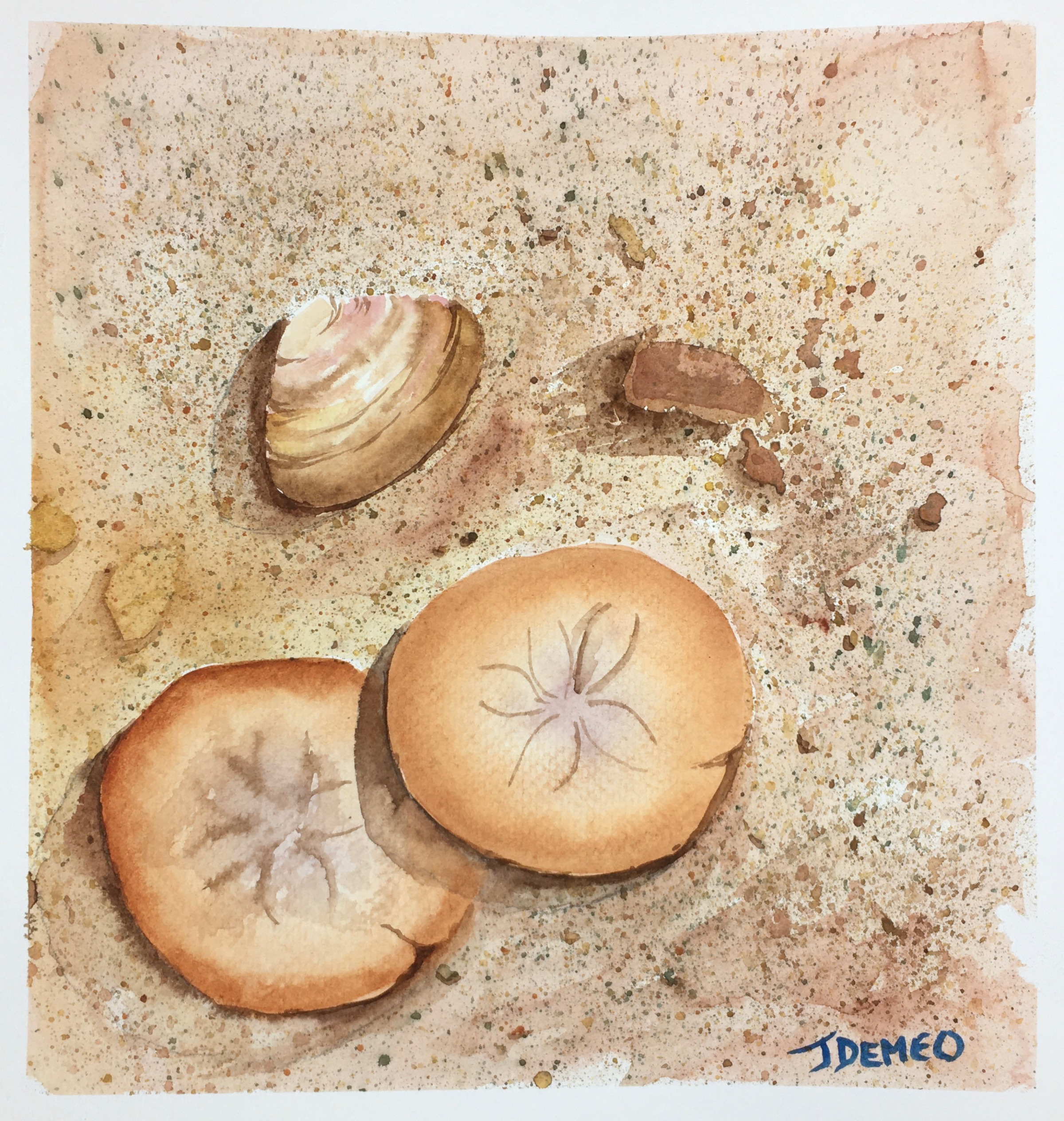 Create these beautiful Sand dollars ,  shell and Sand in a very easy process. Learning glazing ,washes and layering of watercolors and more.