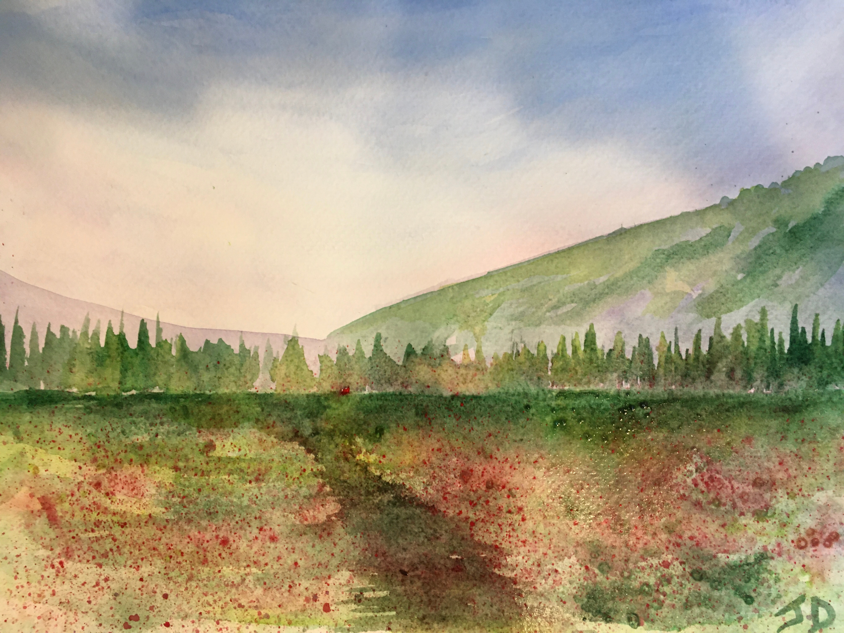 Easy Loose landscape for beginners. Techniques used are wet on wet with watercolors.