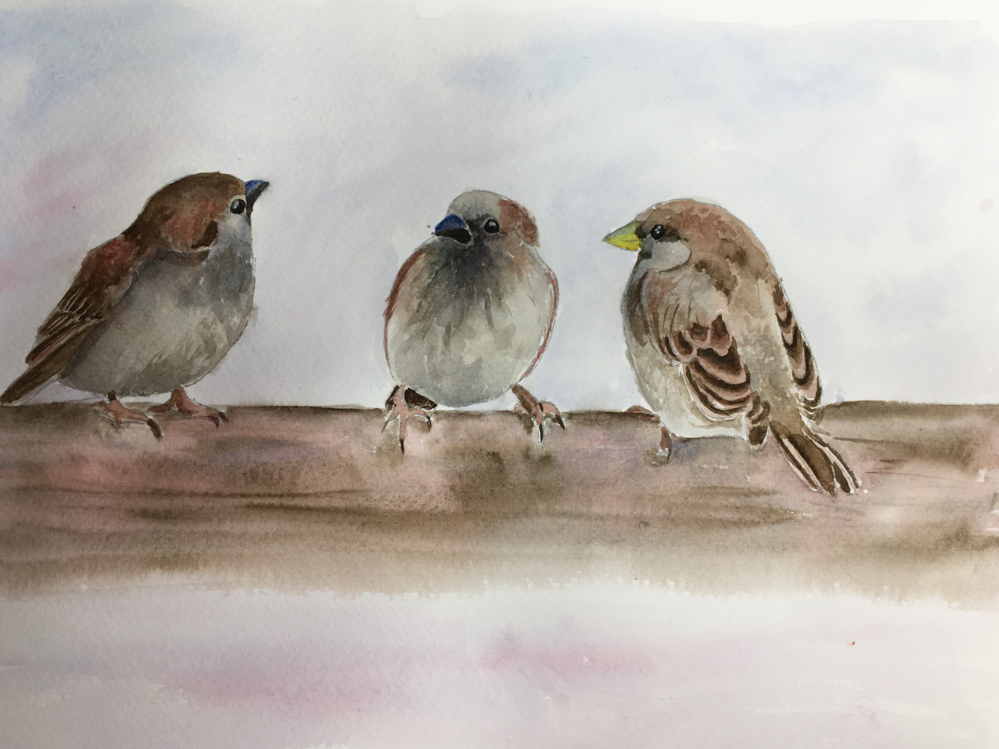 Siblings are 3 beautiful common birds in north America Sparrows. Created  with watercolors