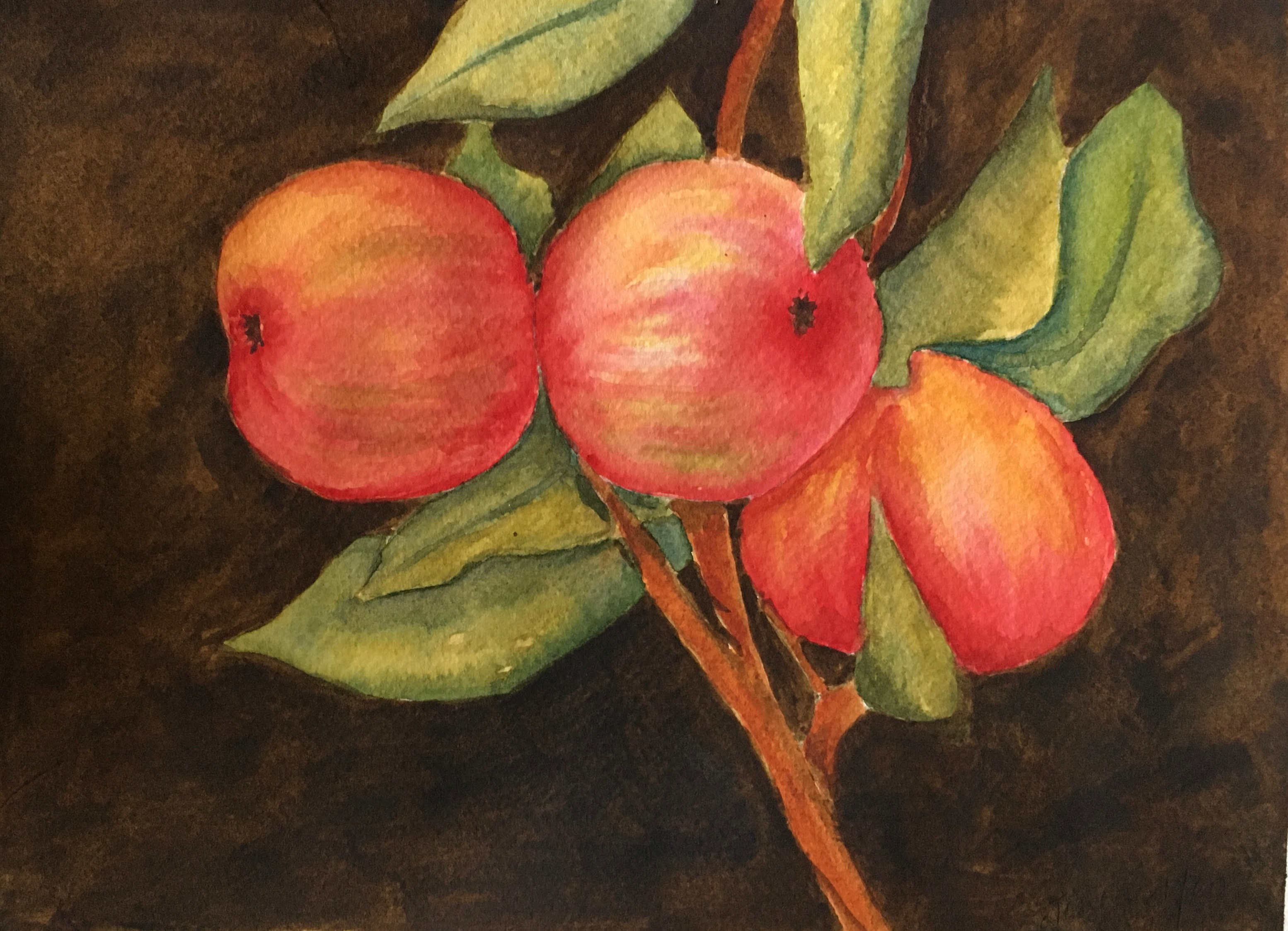 These beautiful apples are ready to be picked off the tree. Juicy reds, oranges and yellows will be on our paint palette.