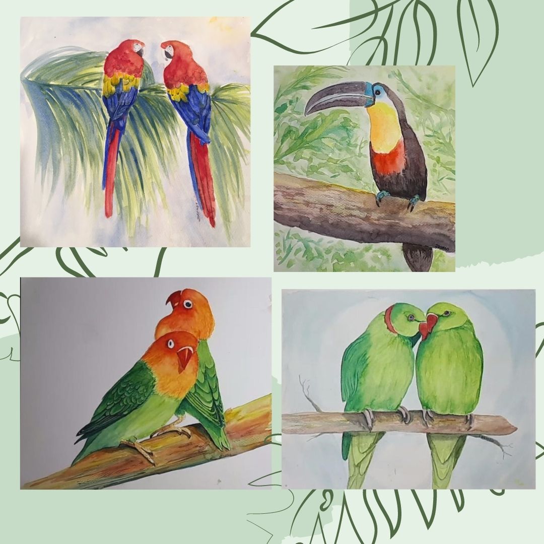 Tropicial Birds with watercolors