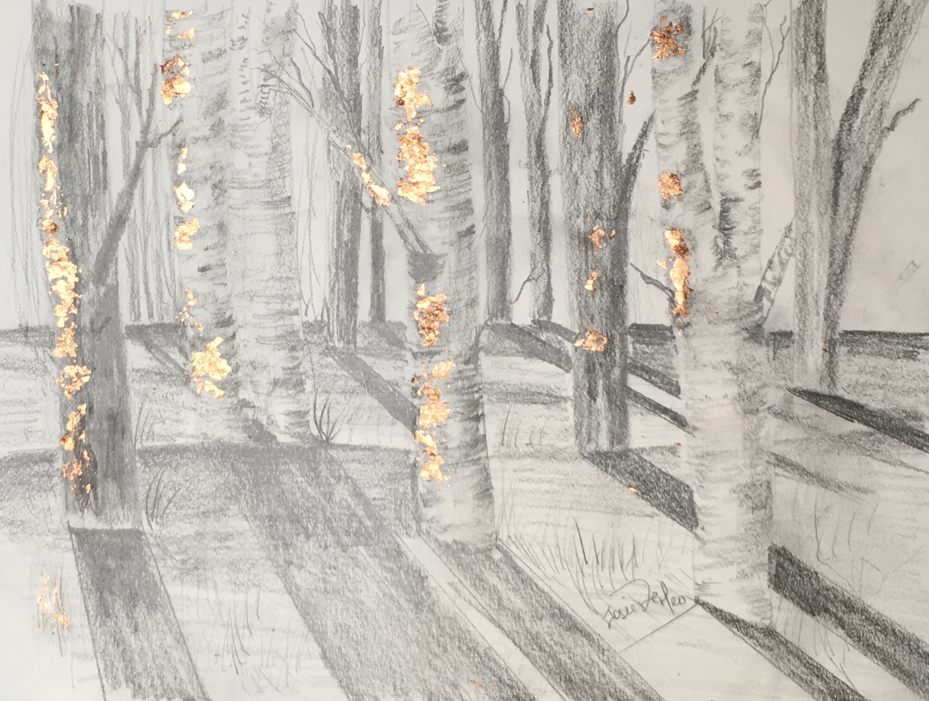 This workshop covers usage of graphite, prospective, light and shadow. Also we will add some copper leaf for some exiting effects.